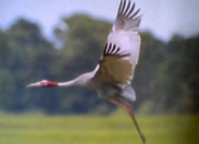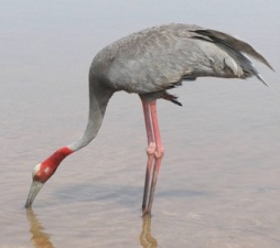 The Sarus Crane, Grus antigone is an all-year resident breeding bird in northern Pakistan and India (especially Central India and the Gangetic plains), Nepal, Southeast Asia and Queensland, Australia. It is a very large crane, averaging 156 cm (5 ft) in length, which is found in freshwater marshes and plains.Ang Trapaing Thmor sanctuary is also an important conservation area for a number of other threatened species. One globally threatened primate species, the Long Tailed Macaque (Macaca Fascicularis) is found within the sanctuary. One globally threatened ungulate species, the Eld's Deer (Cervus Eldii} and three globally threatened turtle species, the Asian Box Turtle (Cuora )